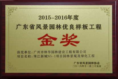 2015-2016年度 珠江新城N5-1项目园林景观及绿化工程金奖