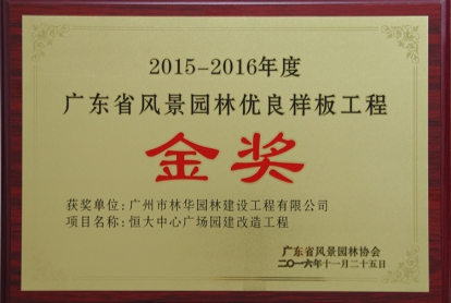 2015-2016年度 恒大中心广场园建改造工程金奖