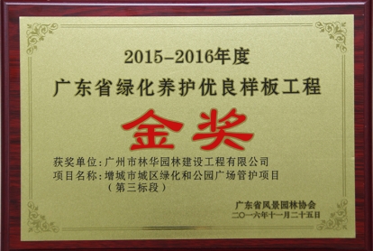2015-2016年度 增城市城区绿化和公园广场管护项目(第三标段)金奖